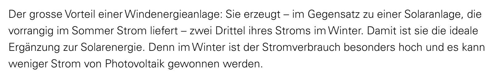 Der grosse Vorteile einer Windenergieanlage ist, dass sie zwei Drittel ihrer Energie im Winter liefert. So jedenfalls steht es auf der Webseite von Rhintlwind.